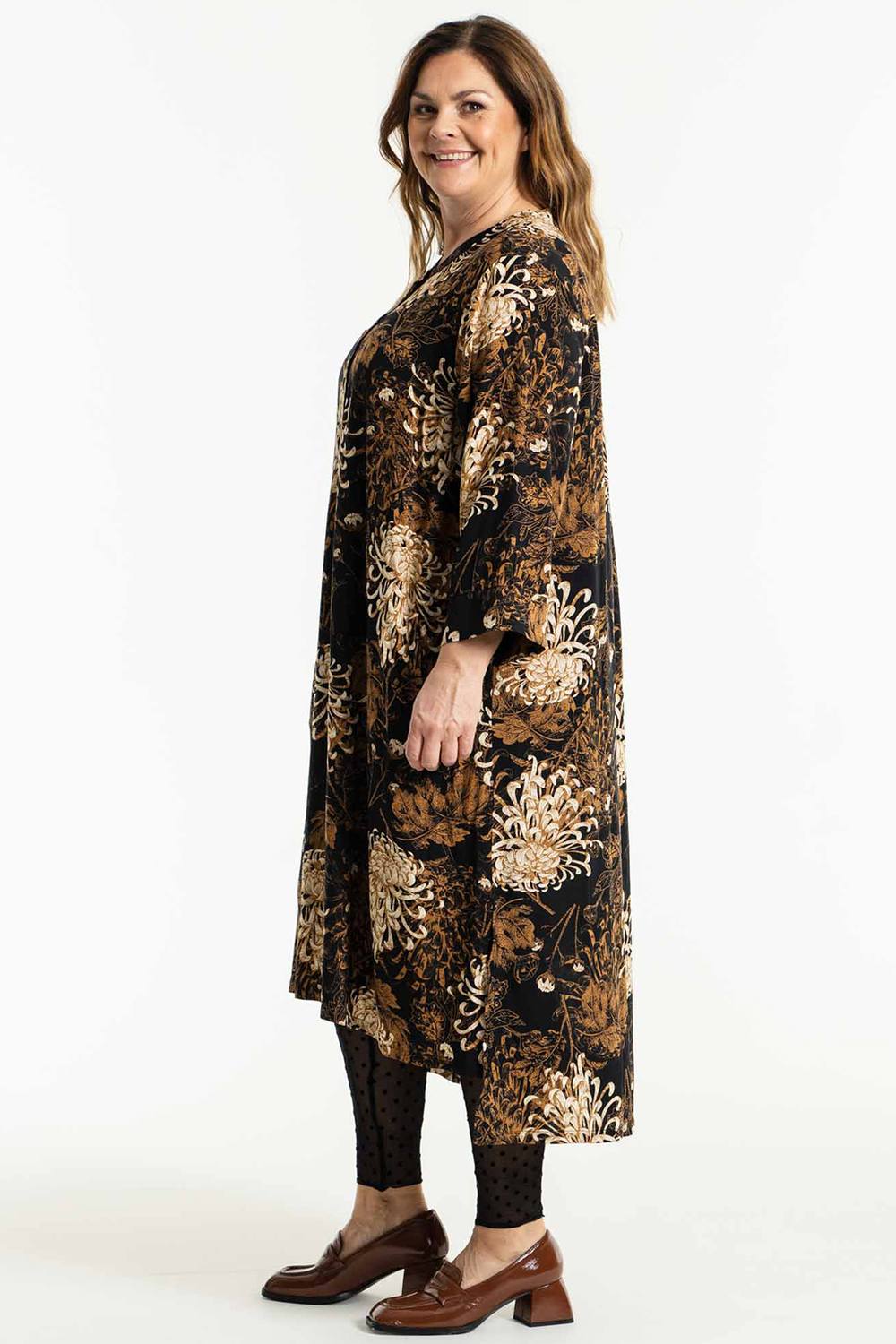 Deze jurk heeft een prachtige print in bruin en zwart, die jouw persoonlijkheid perfect weerspiegelt.