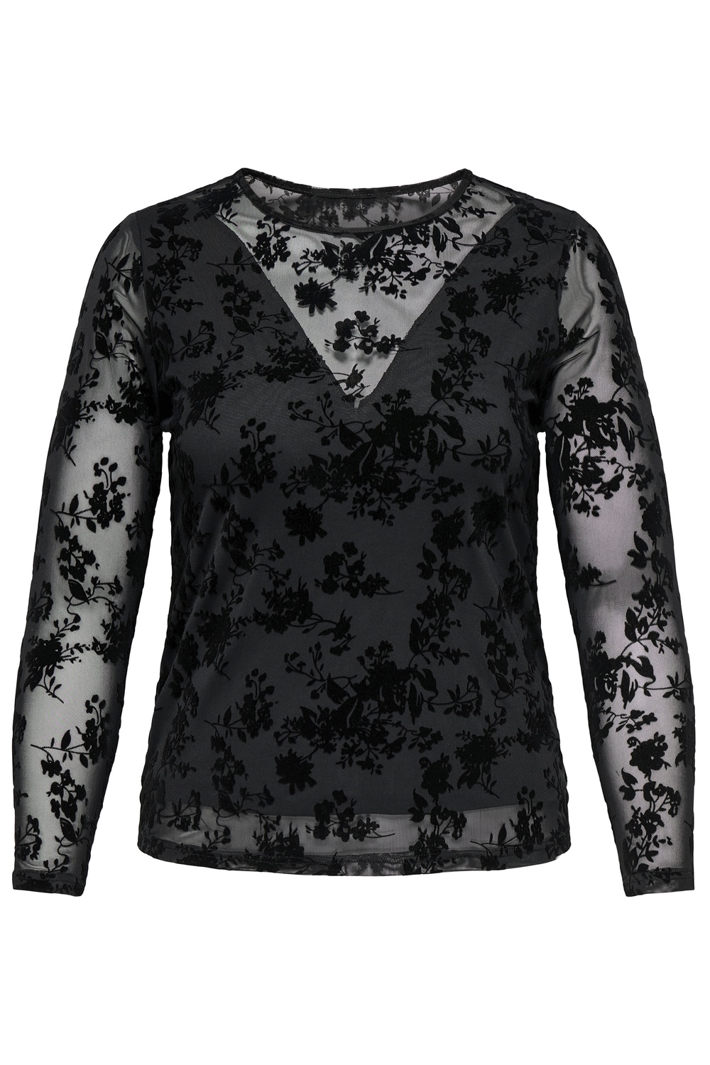 ONLY mesh shirt met fluwelige bloempONLY mesh shirt met fluwelige bloemp