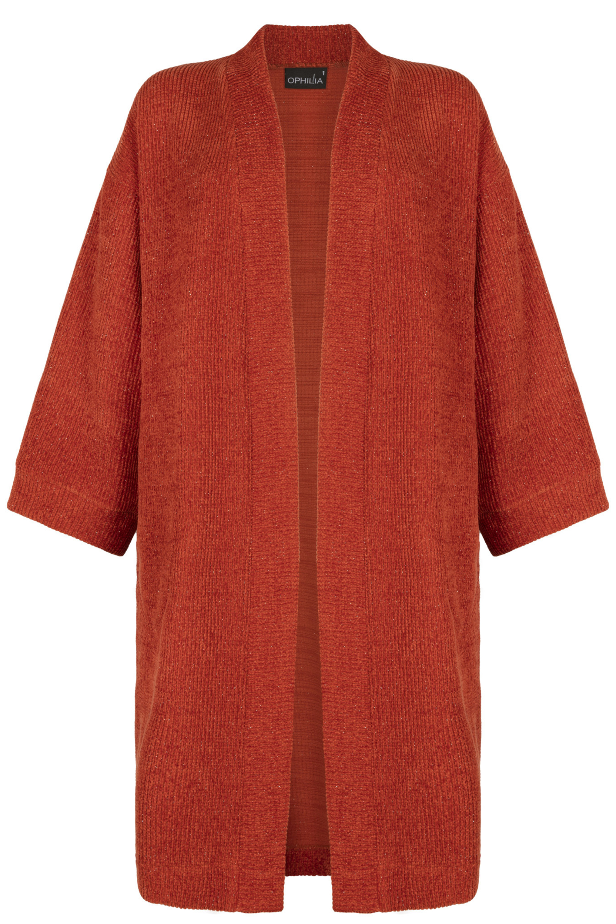 Ophilia oversized vest Comfi chenille is een super mooi losvallend vest met 7/8e mouwen die wat wijder vallen. Een mooi vest om te combineren bij een van de vele leuke jurken uit de Ophilia collectie.