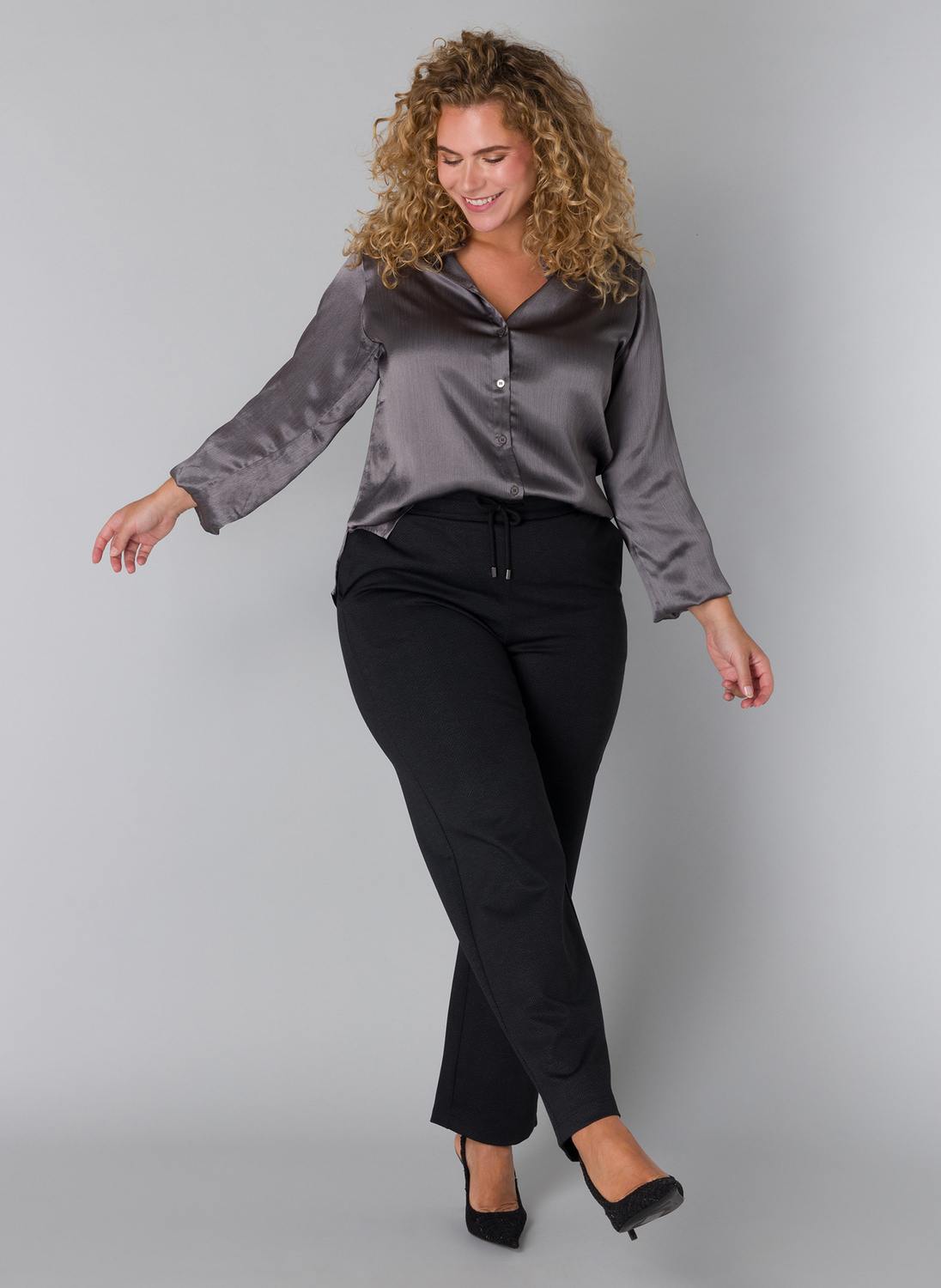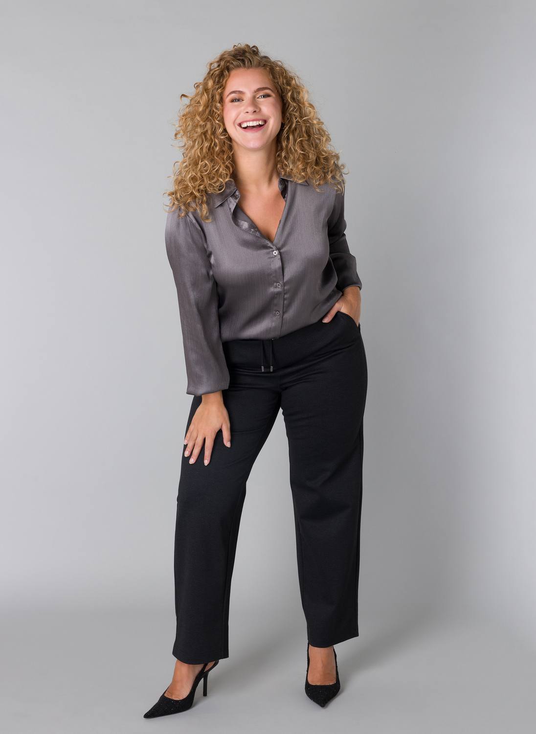 Voeg direct glamour toe aan je outfit met de Yesta Tirza blouse, met een lengte van 72 cm die mooi over de taille valt voor een flatterend silhouet. Deze glanzende blouse van polyester is verkrijgbaar in klassiek zwart en stijlvol donkergrijs, en heeft een elegante kraag en een knopenrij voor een verfijnde uitstraling.
