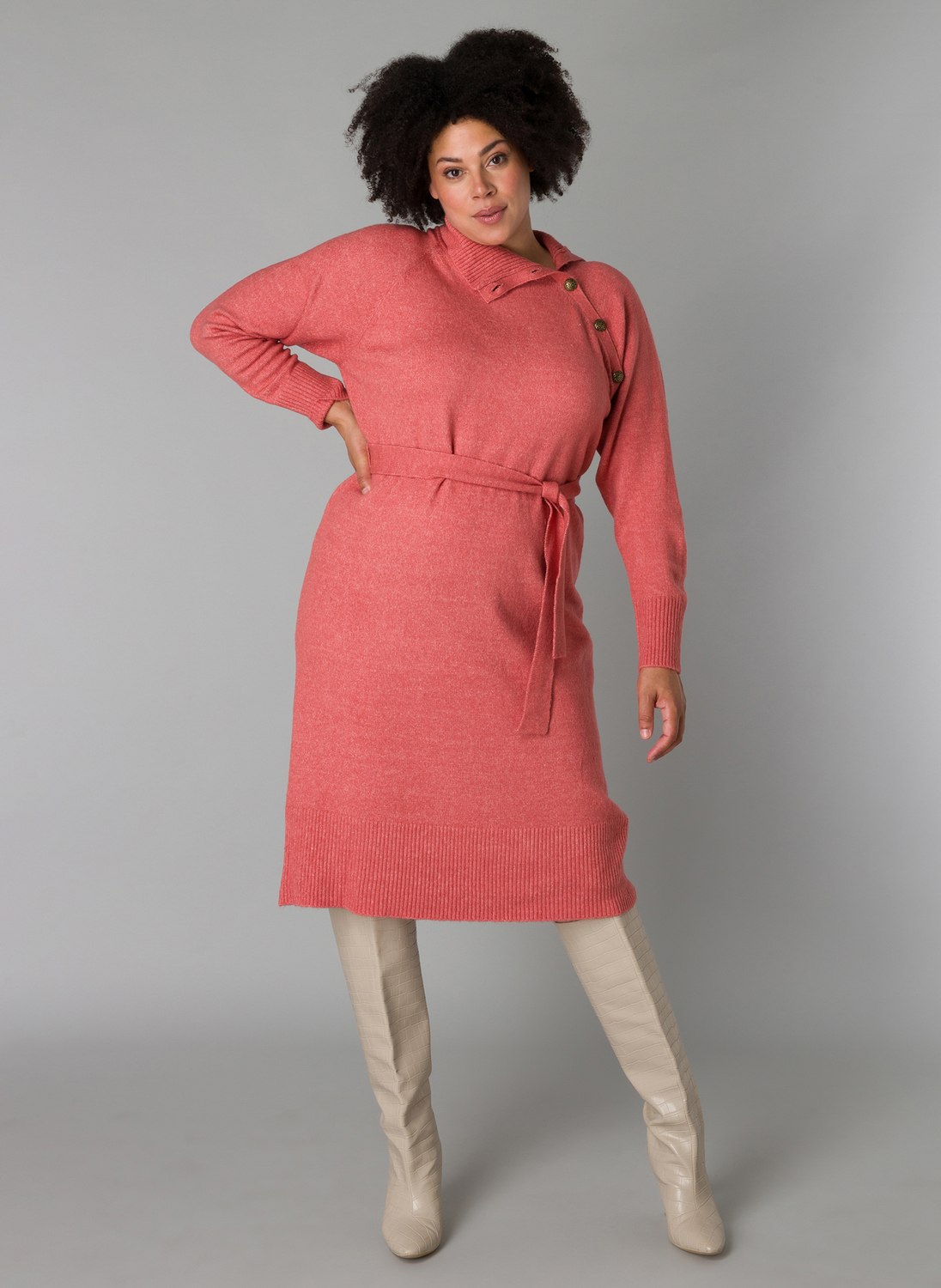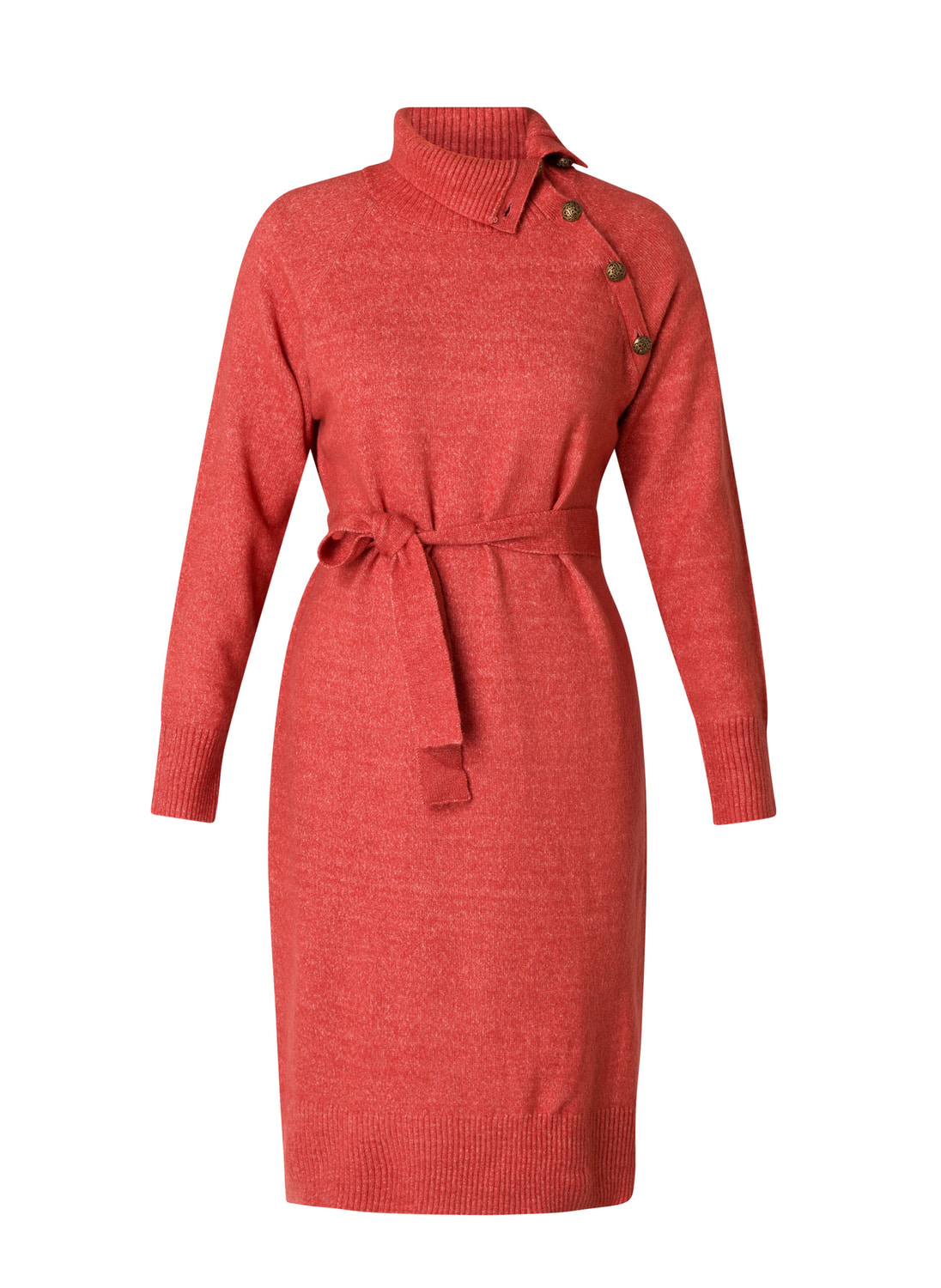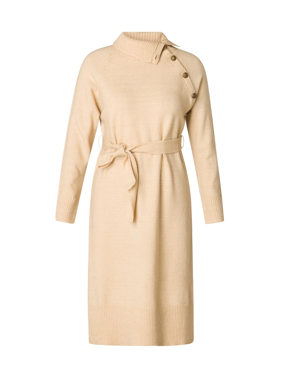 YESTA Salvadora gebreide jurk, 110 cm lang, Light Sand en Brick Red. Deze zachte gebreide jurk van YESTA heeft een stijlvolle col met knopen bij de hals. Draag de jurk los voor een relaxte look of gebruik de meegeleverde strikriem om hem mooi te tailleren. Ideaal voor zowel casual als geklede gelegenheden. Ontdek de YESTA Salvadora jurk nu voor een comfortabele en veelzijdige toevoeging aan je garderobe!