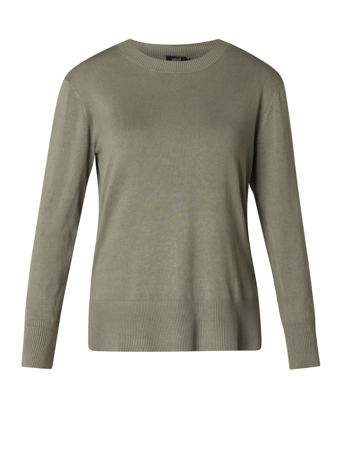 Gemaakt van een glad breisel, combineert deze Yesta trui een wijde ronde halslijn met ribgebreide randen langs de mouwen en onderzijde voor een tijdloze uitstraling. De Selina is verkrijgbaar in meerdere kleuren, zodat je gemakkelijk kunt variëren en combineren met je favoriete outfits. Lengte 74 cm. De mooiste truien vindt je in de categorie grote maten truien.