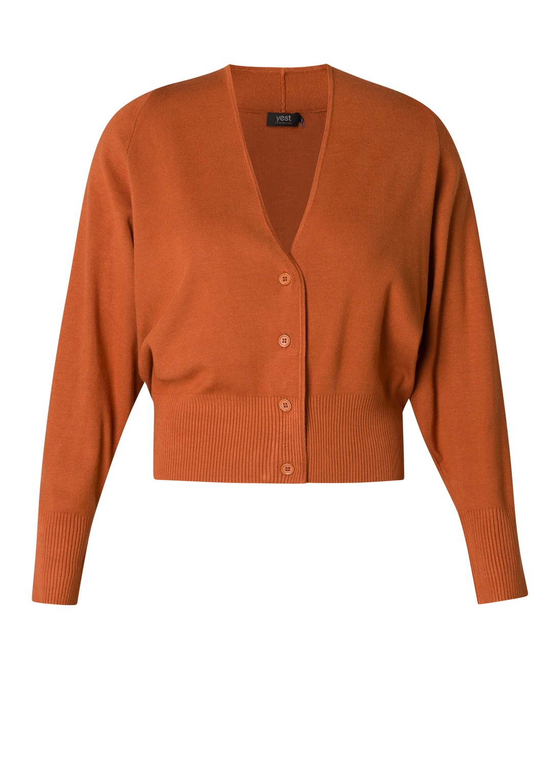 Dit Yesta vestje, vervaardigd uit glad viscose breisel, heeft een lage V-hals en een knopenrij. De Sana is beschikbaar in drie kleuren, met een comfort fit en ribgebreide boorden. Lengte 70 cm. Je vindt meer vesten in de categorie grote maten vesten.