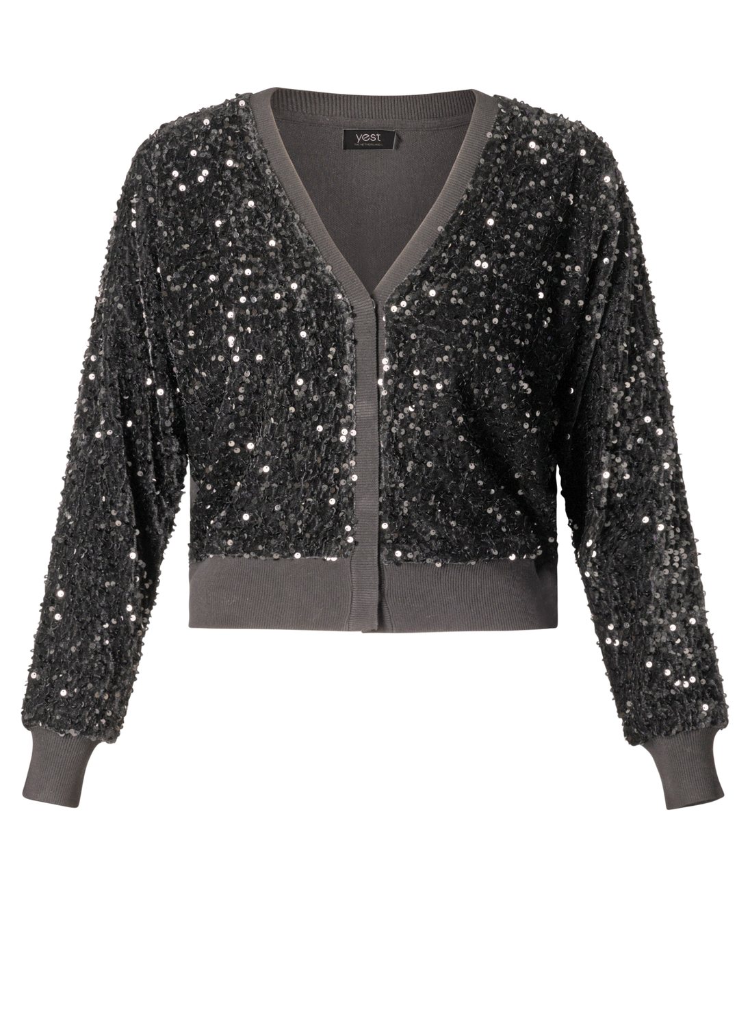 Details: Glanzende pailletten en knopen