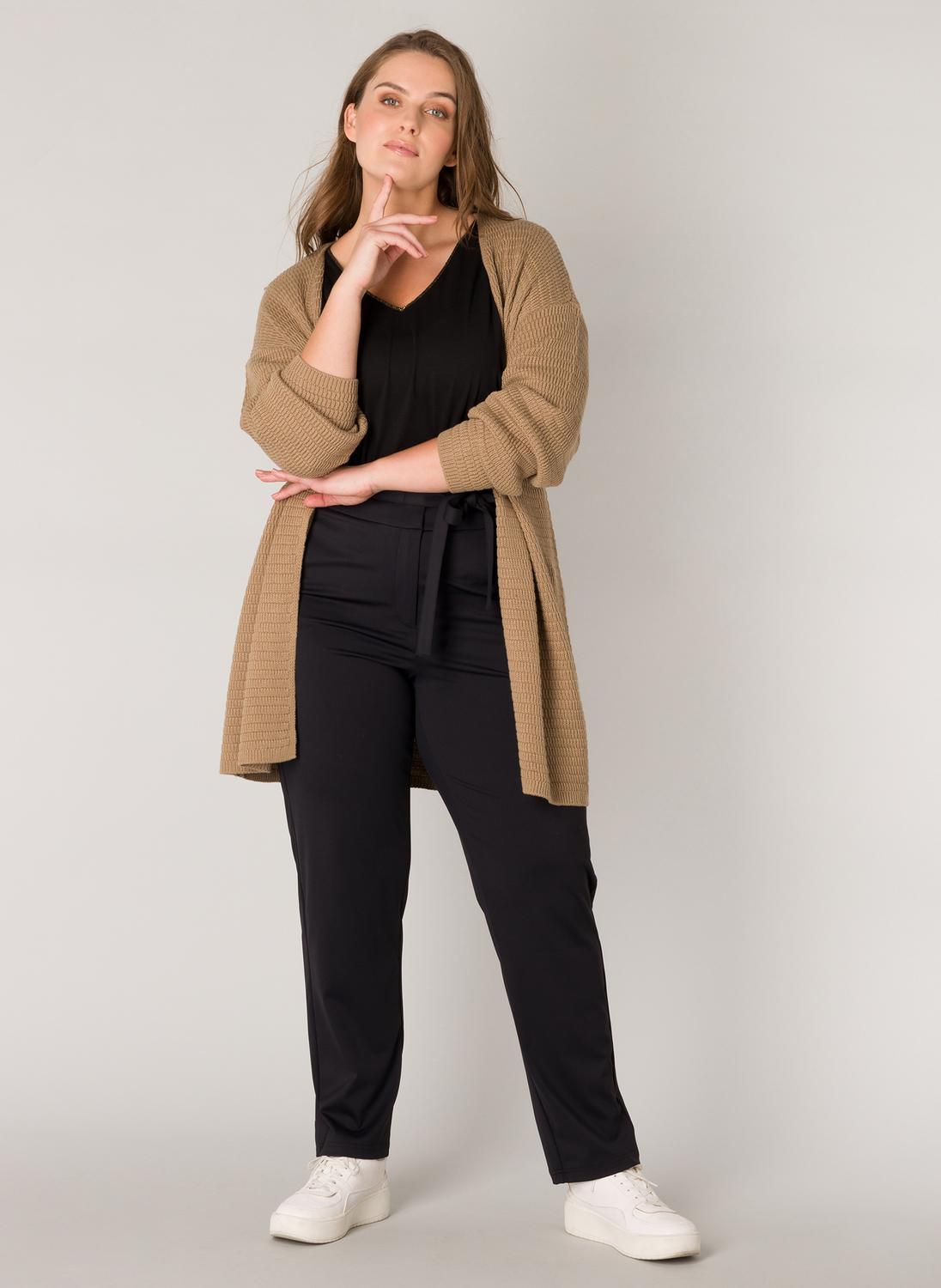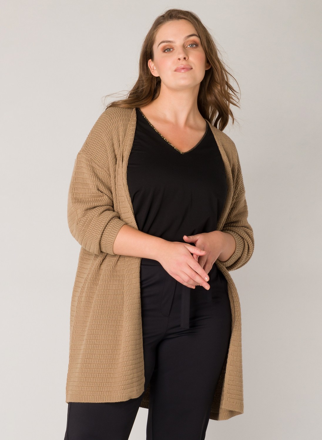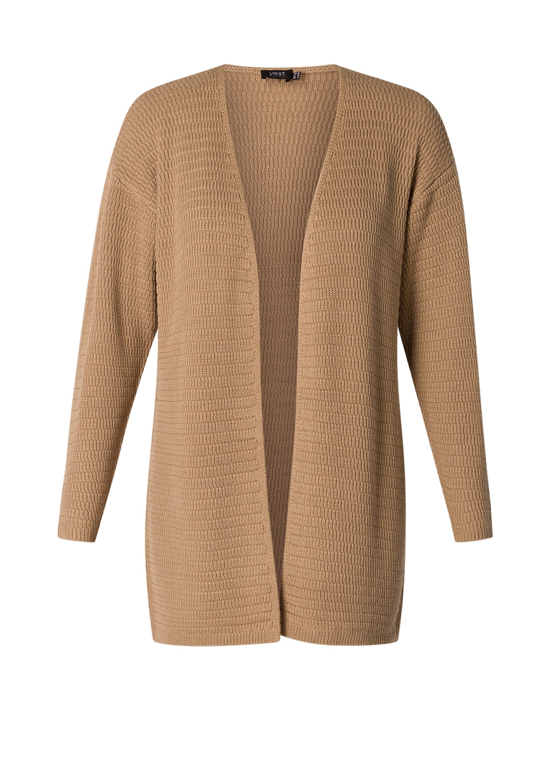 YESTA vest Valeriya Essential  is een mooie basismodel, hij heeft geen sluiting en zakken. In het breisel zit een streep brei effect. Hij heeft een lengte van 83 cm bij maat 2.