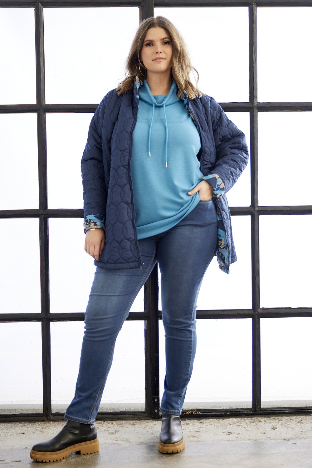 Is dit geen super leuke jas van ZHENZI model Samira. Hij kan 2 zijdig gedragen worden. Of je draagt de print kant of de uni kant. Bij de print kant zitten ogestikte zakken en bij de uni kant zitten paspel zakken die zijn afgewerkt met een randje van de print stof. De jas sluit met een rits en heeft lange mouwen met een smalle boord, bij maat M is deze 28cm rondom. De print stof zit los van de binnenvoering en bij de uni stof is deze doorgestikt. De jas heeft een smal opstaand boordje. Meer jassen vindt je in de link.