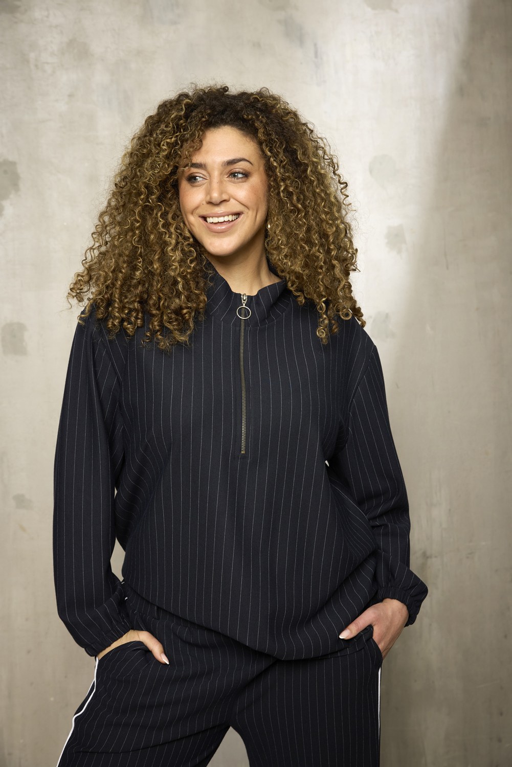 ZHENZI streep sweater trui ritsZHENZI streep sweater trui rits