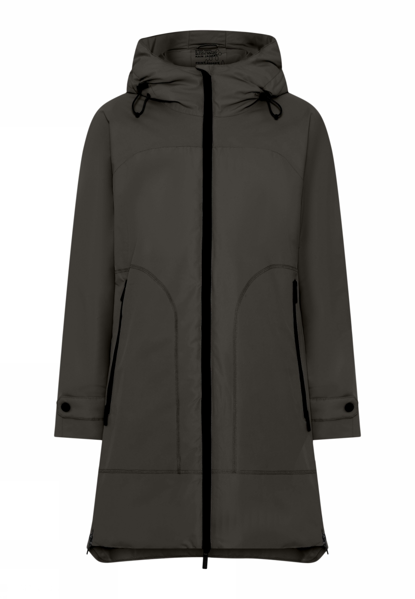 Etage eco Magic Rain jas komt aan zijn naam wanneer je met de jas in de regen loopt dan verschijnt er een zigzag motiefje. Deze gaat weer weg als de jas opdroogt. De jas heeft veel details: