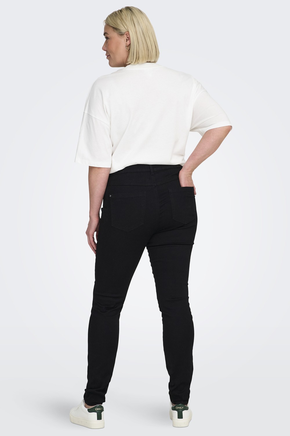 Zwarte jeans van ONLY Carmakoma is een goede zwarte. Was hem binnenste buiten dan blijft hij ook mooier. Het is een half skinny model en 5 pocket met ritssluiting.