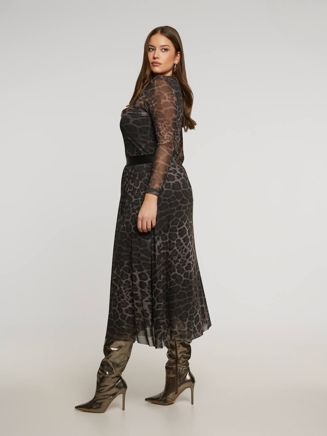 Deze Mat Fashion rok is een echte eyecatcher voor jouw plus size garderobe. Gemaakt van licht, transparant mesh met een grijs/bruine dierenprint (kleur Cigar), straalt hij stijl en zelfvertrouwen uit. De elastische tailleband zorgt voor een comfortabele pasvorm die mooi met je meebeweegt.
