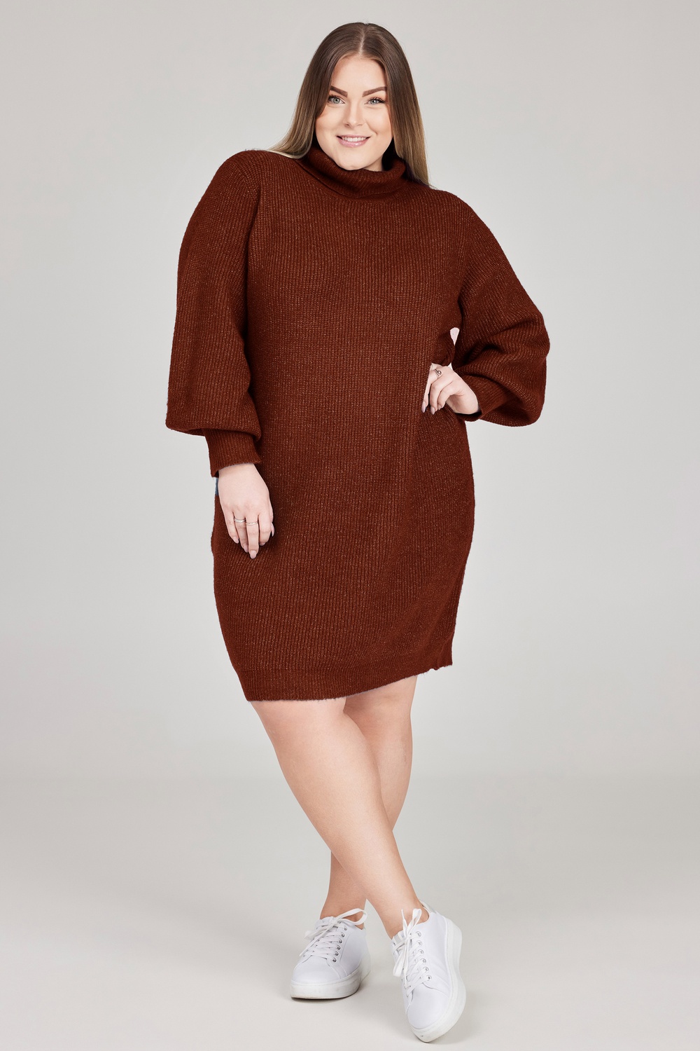 No.1 by OX gebreide jurk met een rol col. Een super leuk model om te combineren met een leatherlook legging of dikke panty van Cette of Pamela Mann .