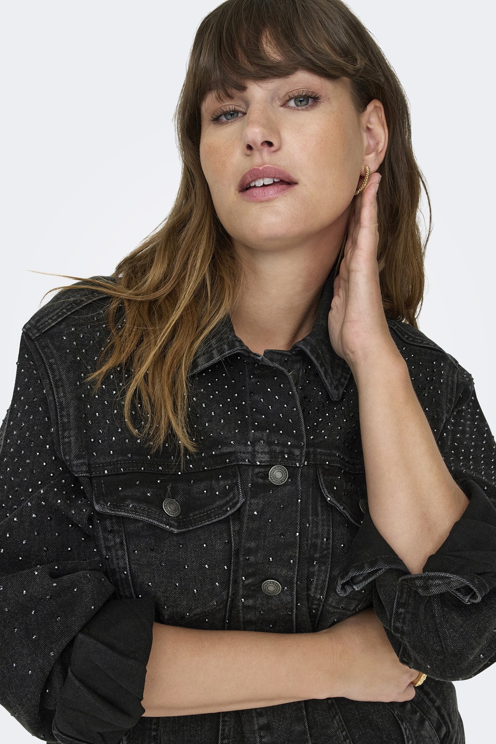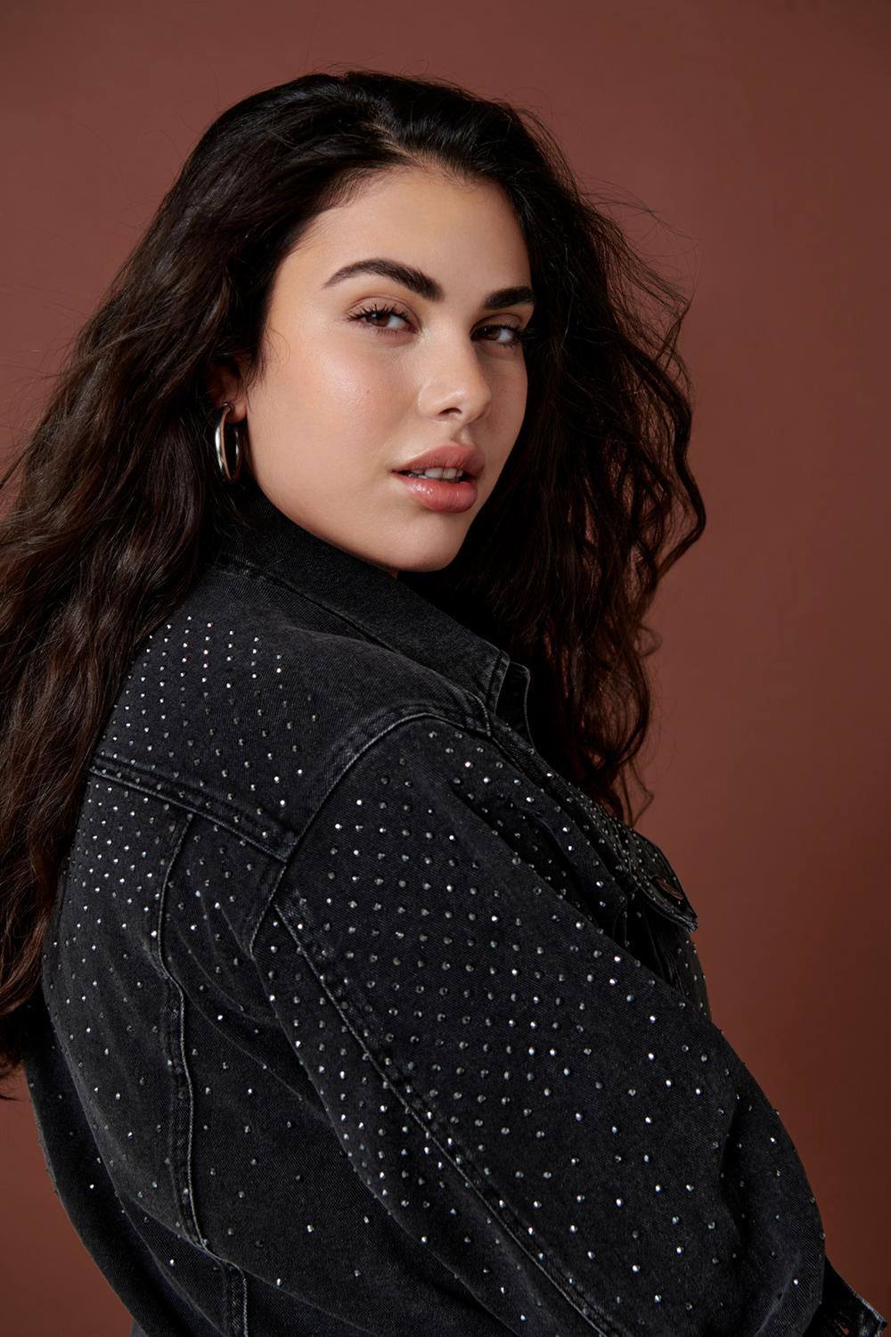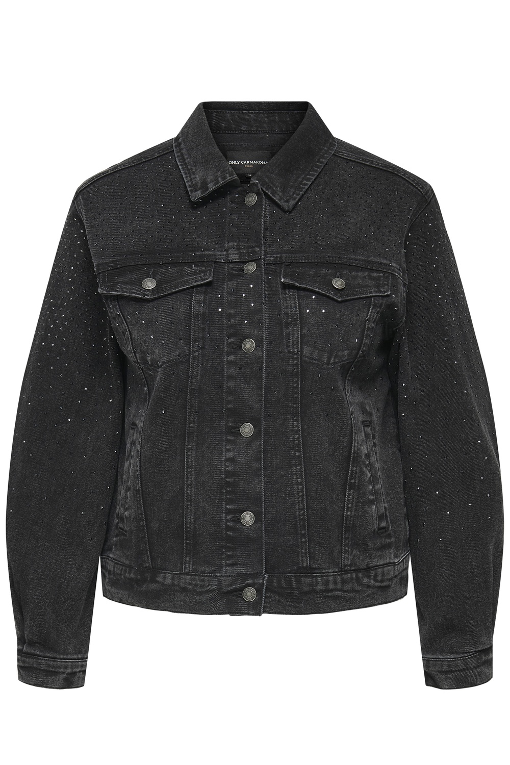 ONLY Carmakoma jack JAGGER is een donkergrijze denim met glitter steentjes op de bovenkant van het pand en op de bovenkant van de lange mouwen. Het jack heeft een wat getailleerde pasvorm en valt kort. Combineer hem bij een donkere jeans voor de juiste outfit. De mooiste jasjes vind je in de categorie grote maten jasjes.