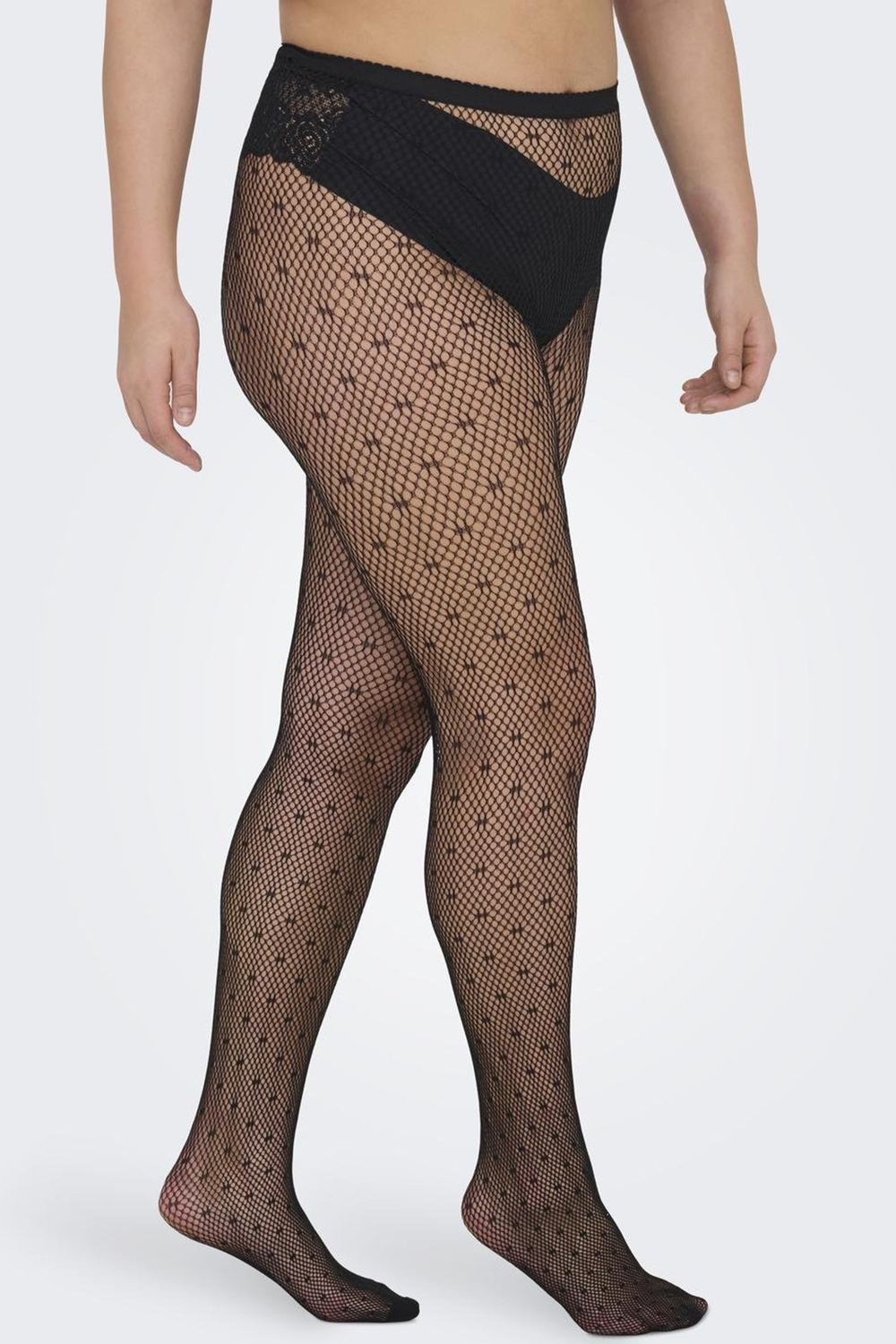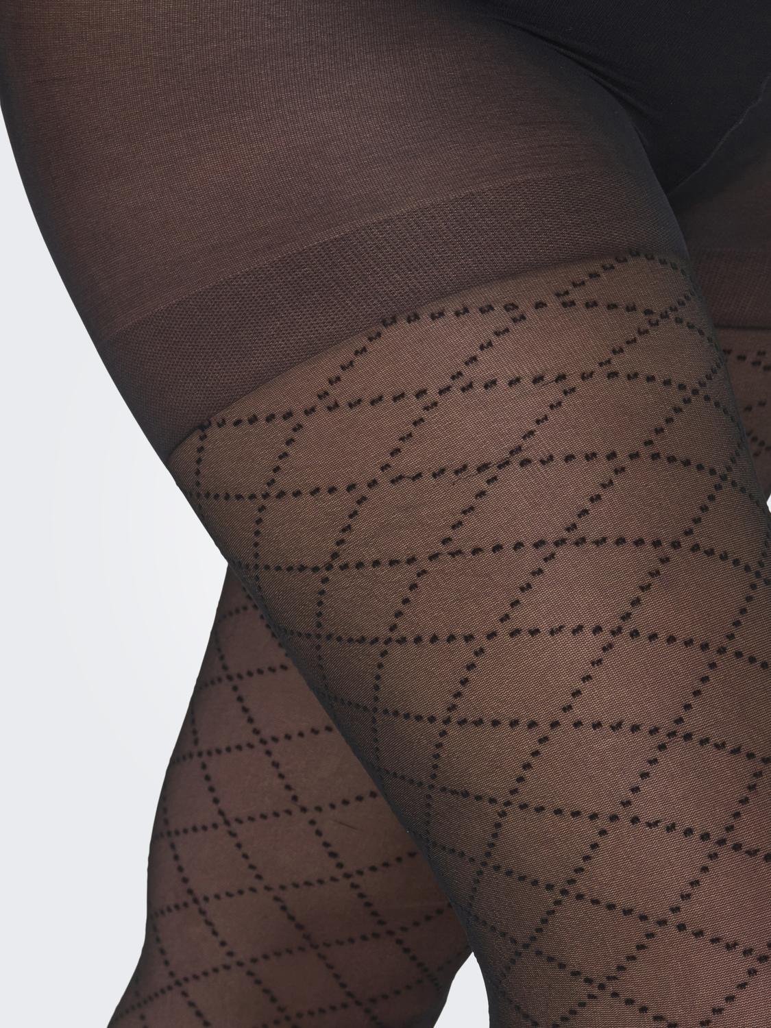 ONLY Carmakoma panty CARESTA is er in diverse prints. Een bloemen print een stip print en een diamant print. Ze zijn allemaal uit gevoerd in een 20 denier. Bij de stip print en de bloem print heeft het materiaal een visnet effect. Bij de diamant is dit het gewone panty materiaal.