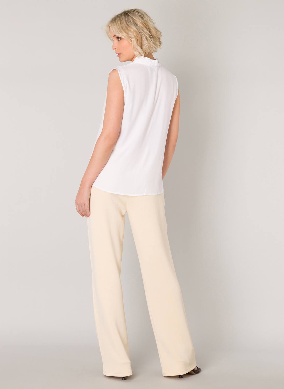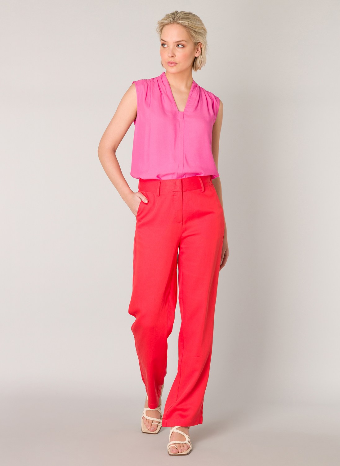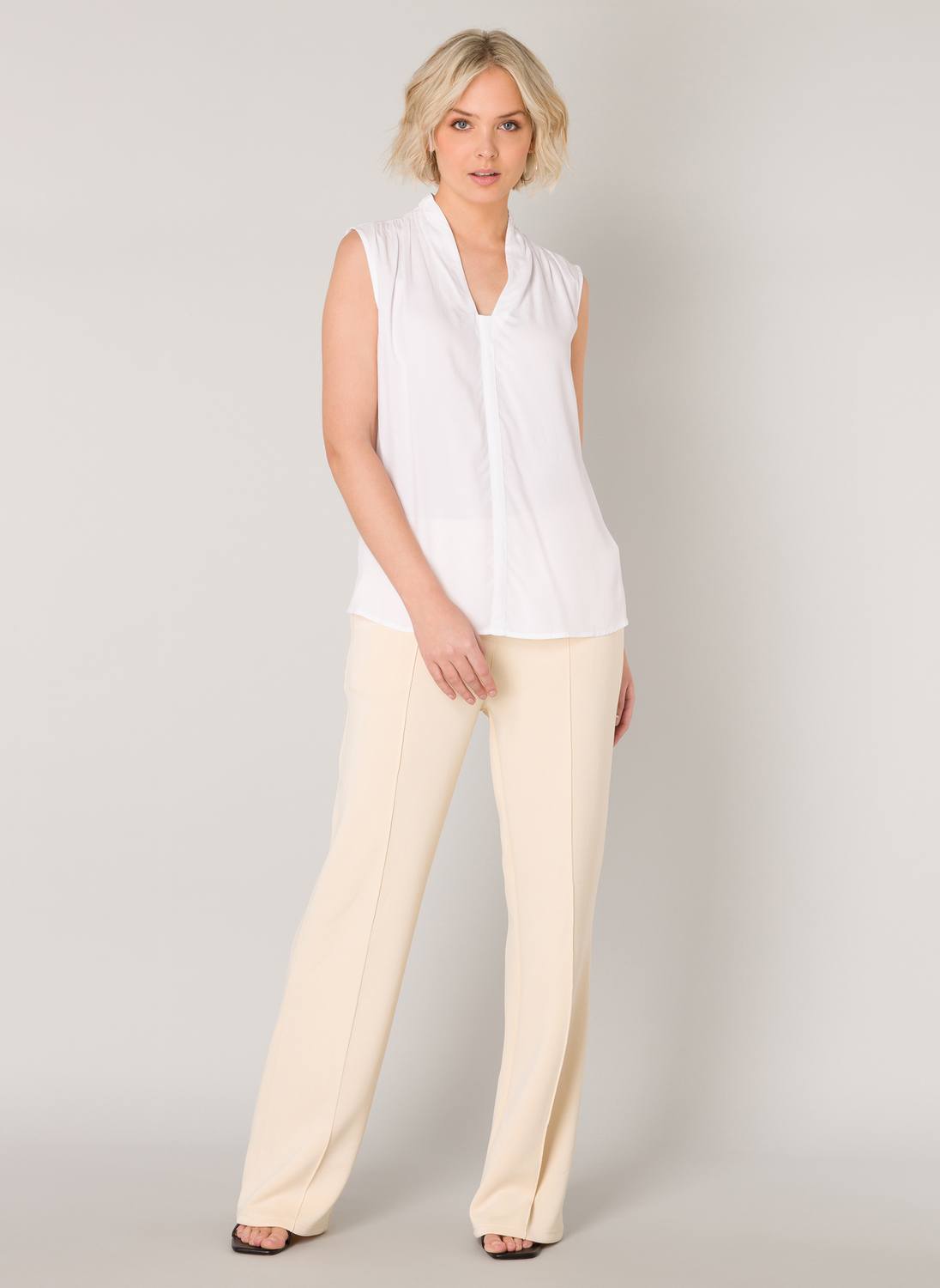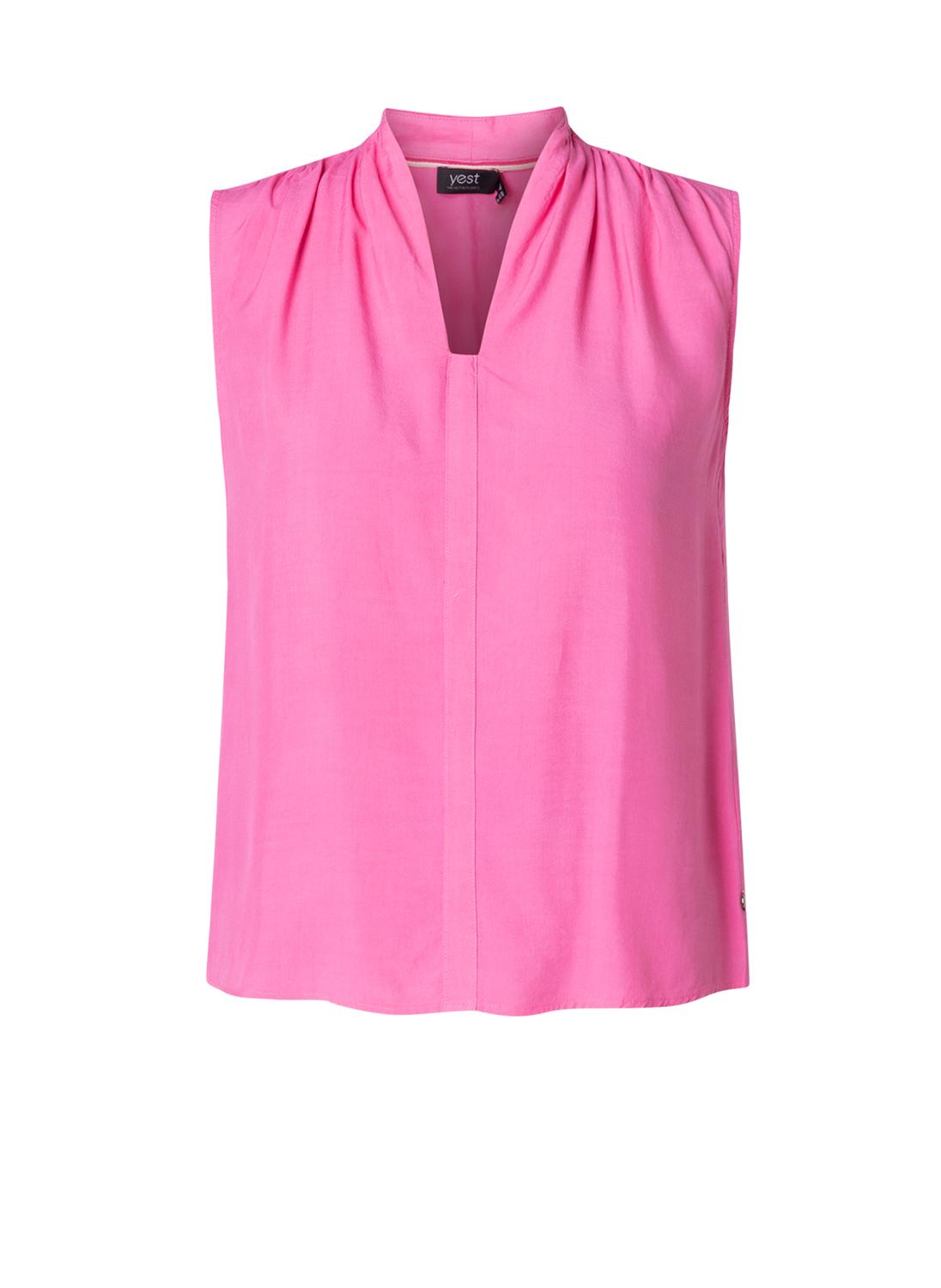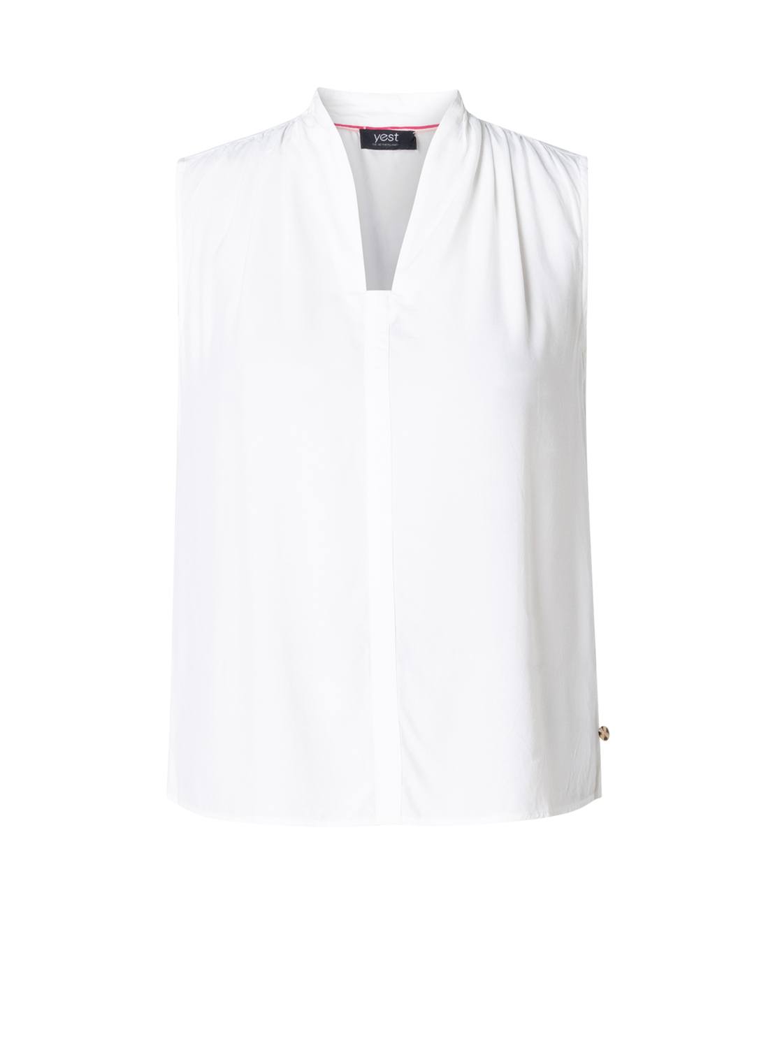Yest top in een viscose/rayonmix. De V-hals heeft een hoge neklijn. Deze luchtige mouwloze top heeft een regular fit en loopt rond weg aan de onderzijde. Deze top is verkrijgbaar in wit en roze. Lengte 64 cm. ​Je vindt meer shirts in de categorie grote maten shirts.