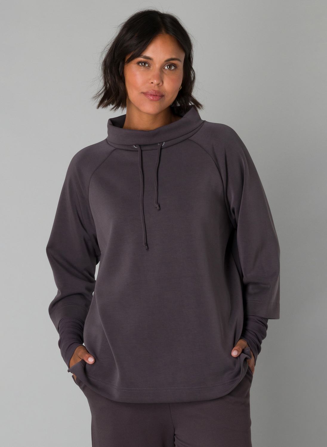Deze zachte Yest sweater met dubbele mouwen biedt een unieke stijl. De wijde en strakke geribde mouw geven een trendy twist, terwijl de wijde col extra comfort toevoegt. De Samantha Essential is gemaakt van een luxe polyester-modal mix, ideaal voor een cozy look. Lengte 68 cm.