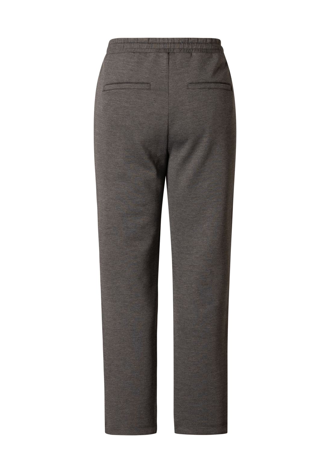 Jersey pantalon van Yest, verkrijgbaar in de kleur Dark grey melange. De Isemerai Essential heeft een platte naad over het midden van het been, steekzakken en een drawstring in de taille. De pijpen lopen ietwat taps toe.