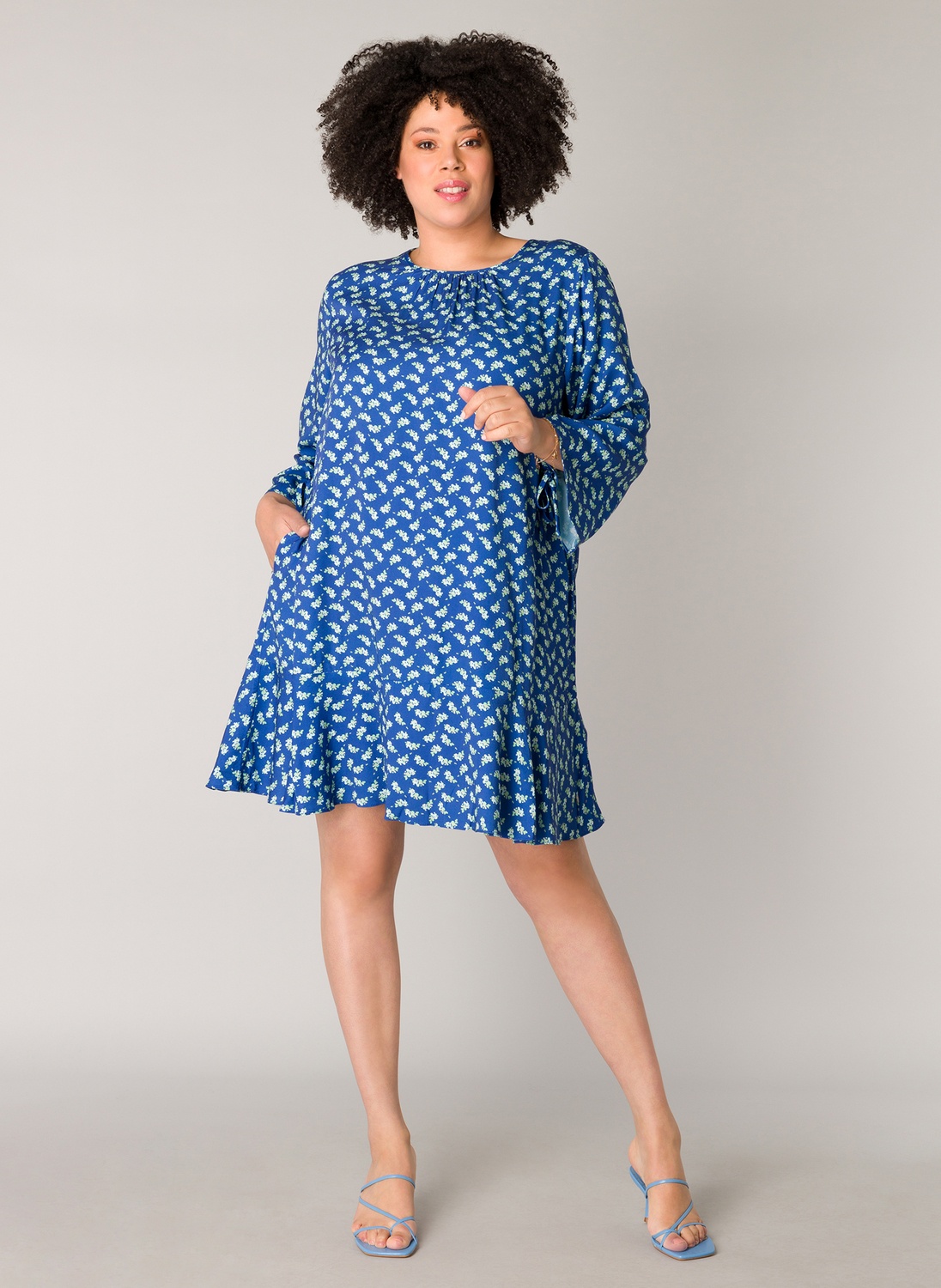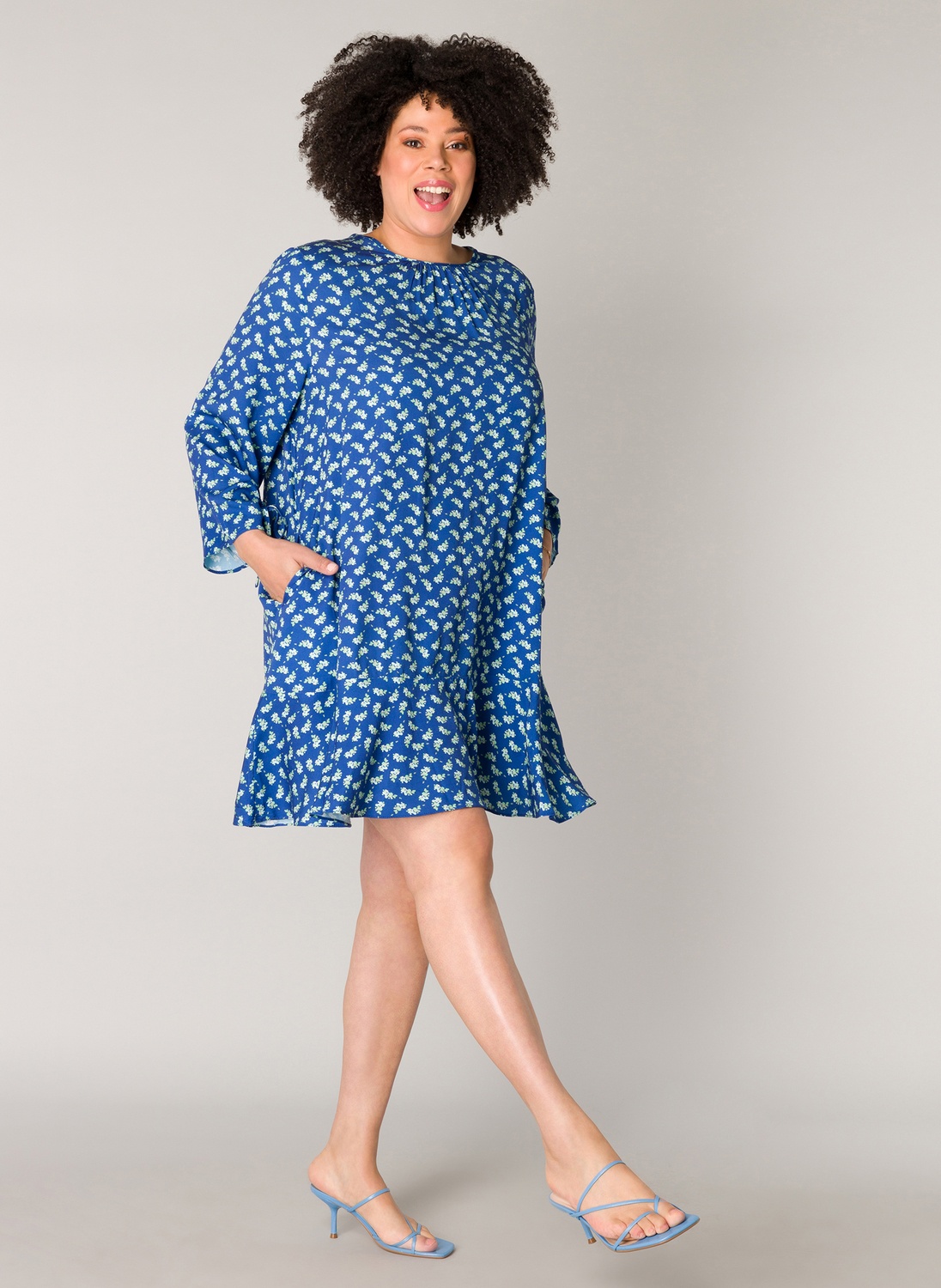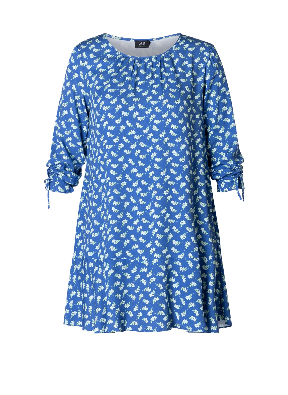 Tuniek in een helderblauwe bloemenprint met een roezel aan de onderkant. Dit Yesta tuniek van 100% Ecovero viscose heeft een ronde halslijn en driekwart mouwen met een tunnel en een koordje om aan te snoeren. De Jula is 95 cm lang. Voor andere leuke tunieken kunt u kijken in de categorie grote maten tunieken.
