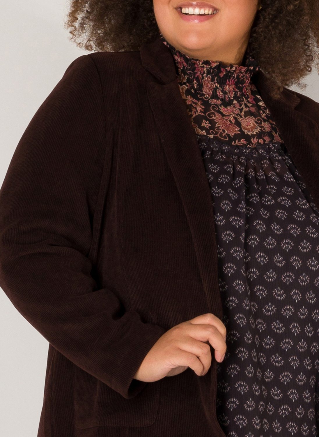 Corduroy blazer in donkerbruin met een reverskraag en opgestikte zakken. Bevat stretch dus draagt extra prettig. De Delilah van YESTA heeft een Slim Fit en is gemaakt van 98% Polyester en 2% Elastaan. Deze blazer is verkrijgbaar in Coffee Brown. Je vindt meer blazers in de categorie grote maten blazers.