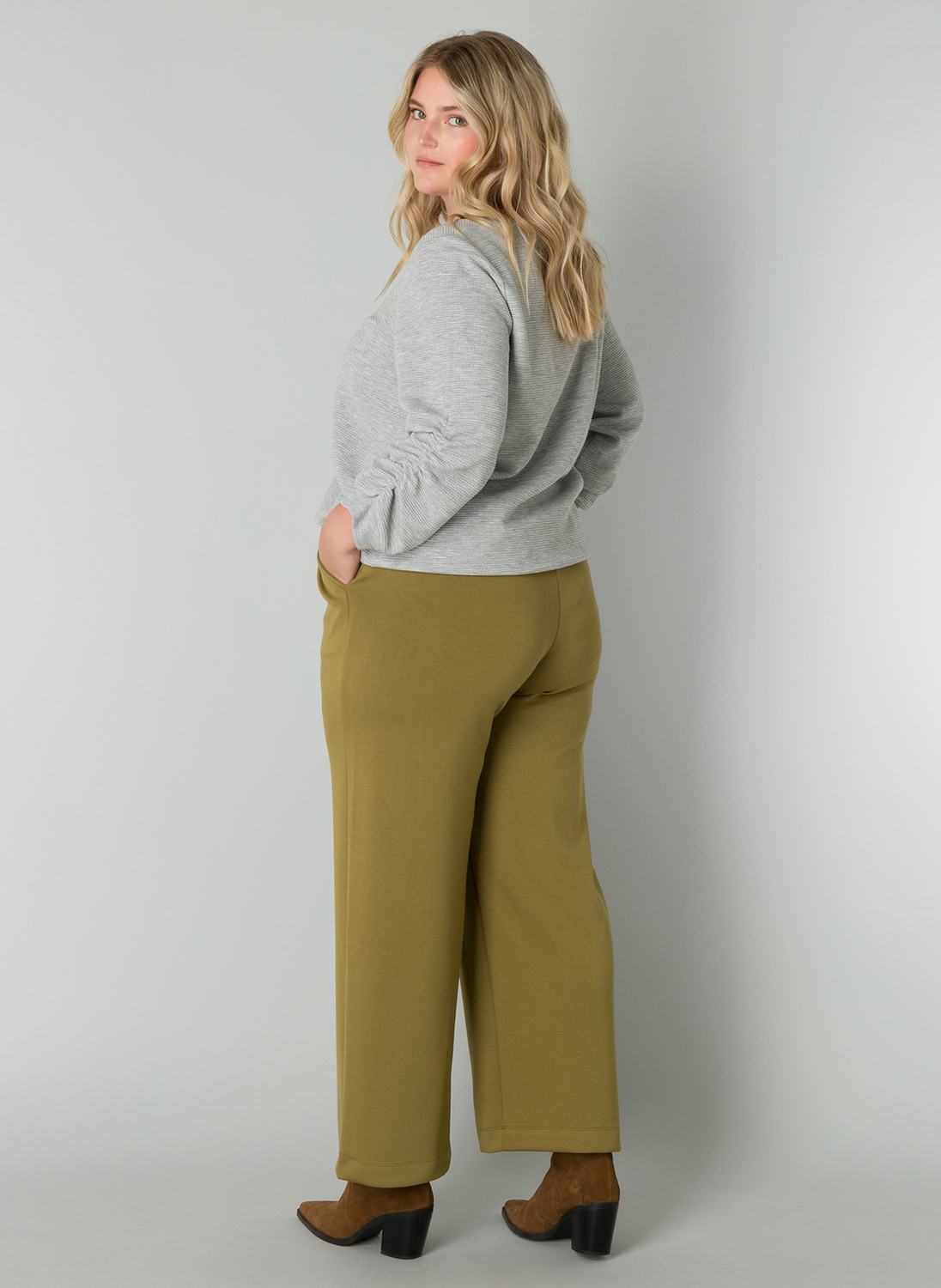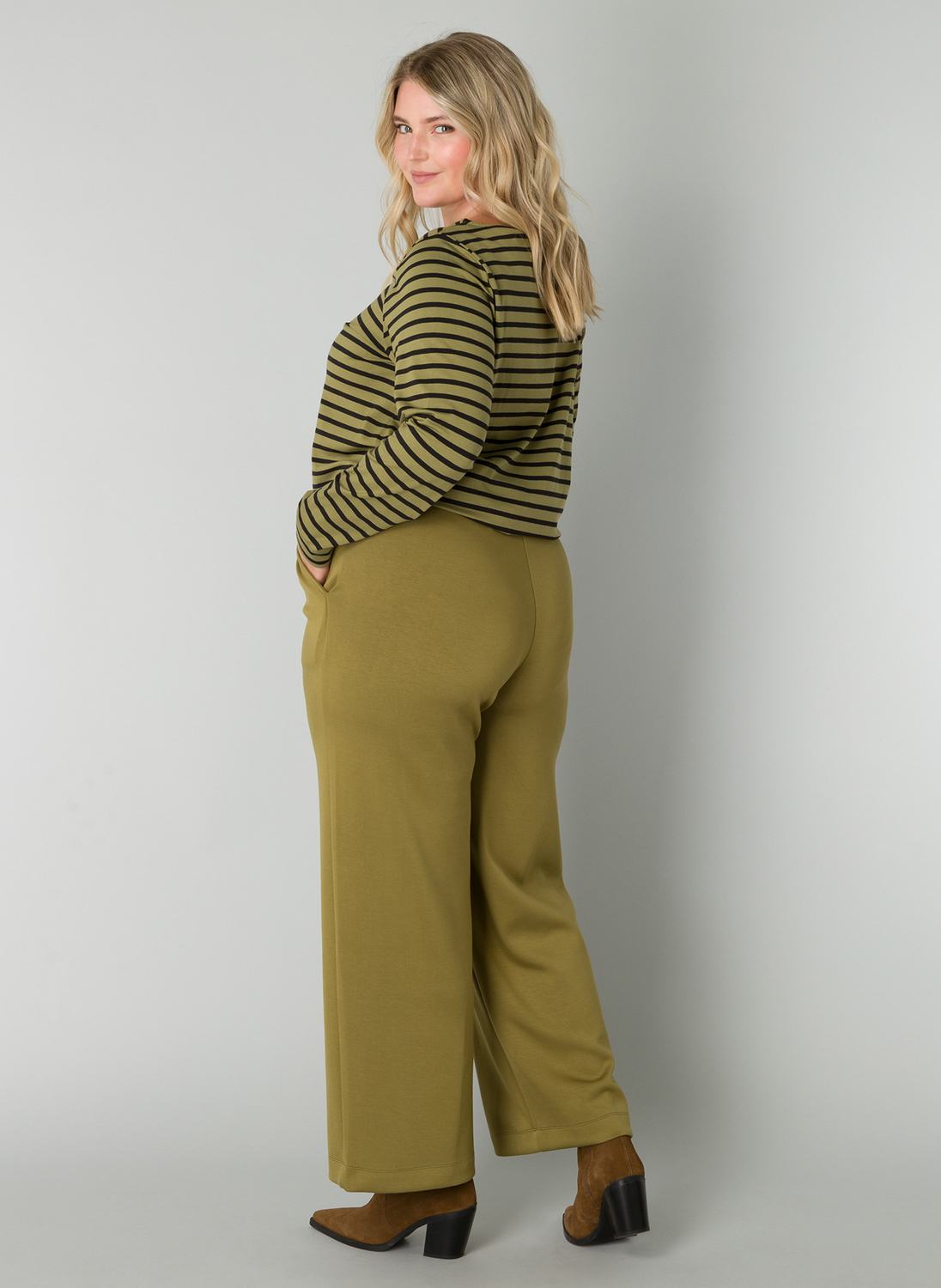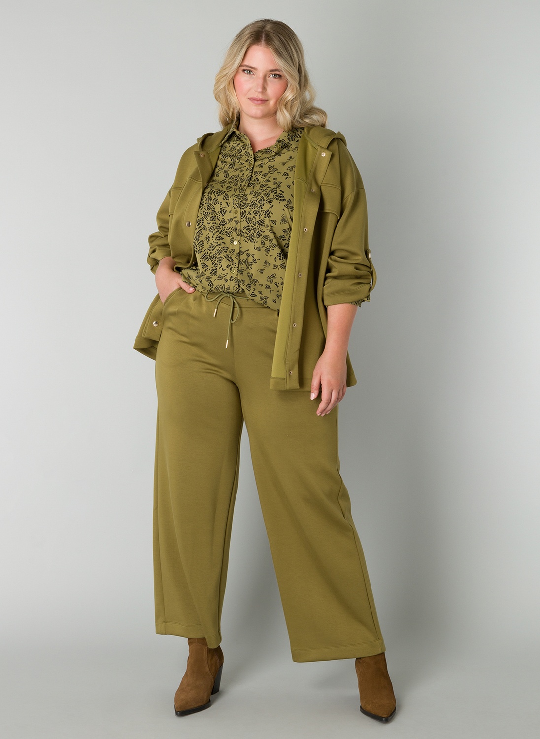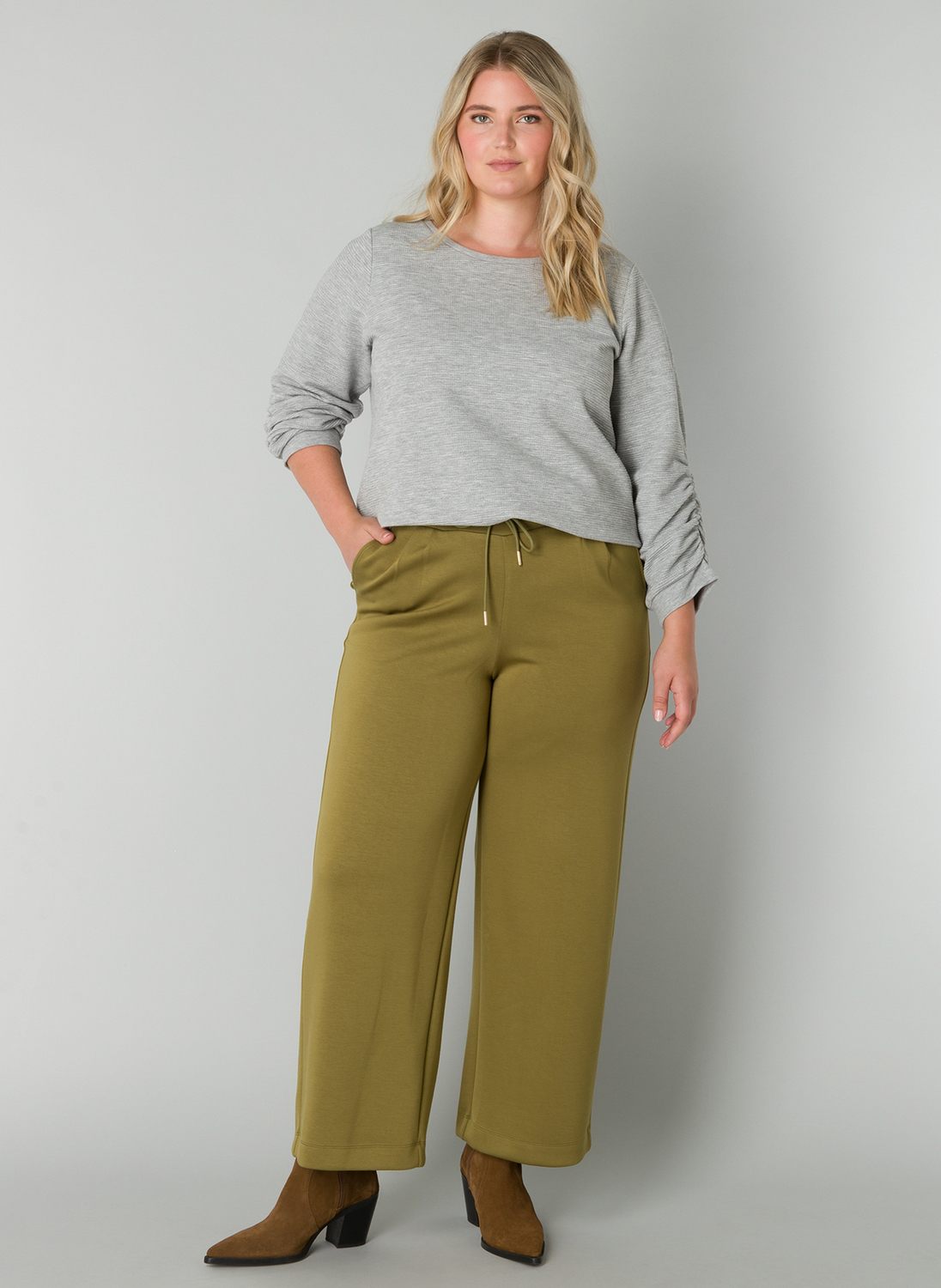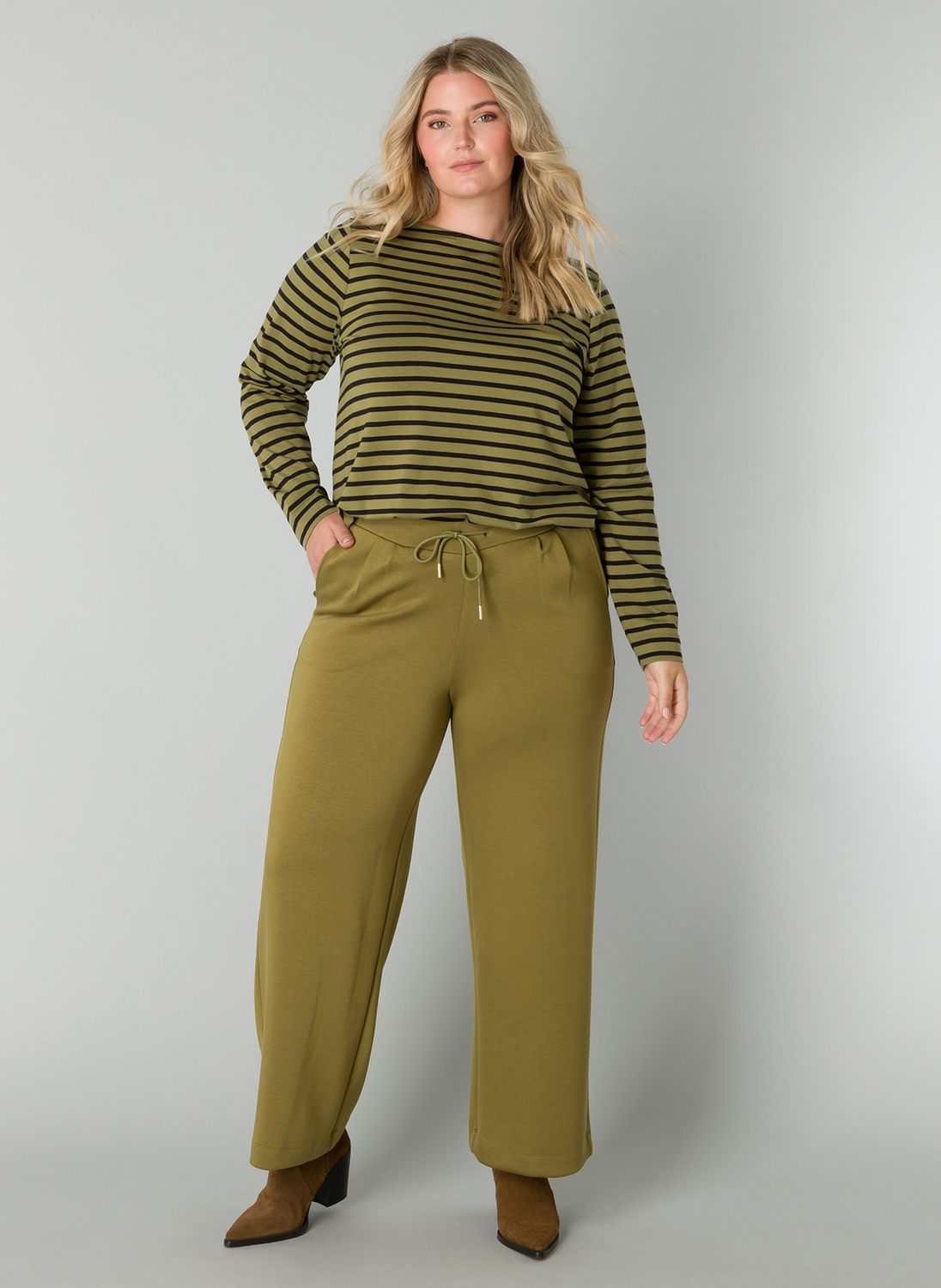 Lange wijde Yesta broek in een comfortabele zachte stof. De Romijn heeft een rechte pijp, steekzakken en een elastische tailleband met een drawstring. Lengte 29 inch.