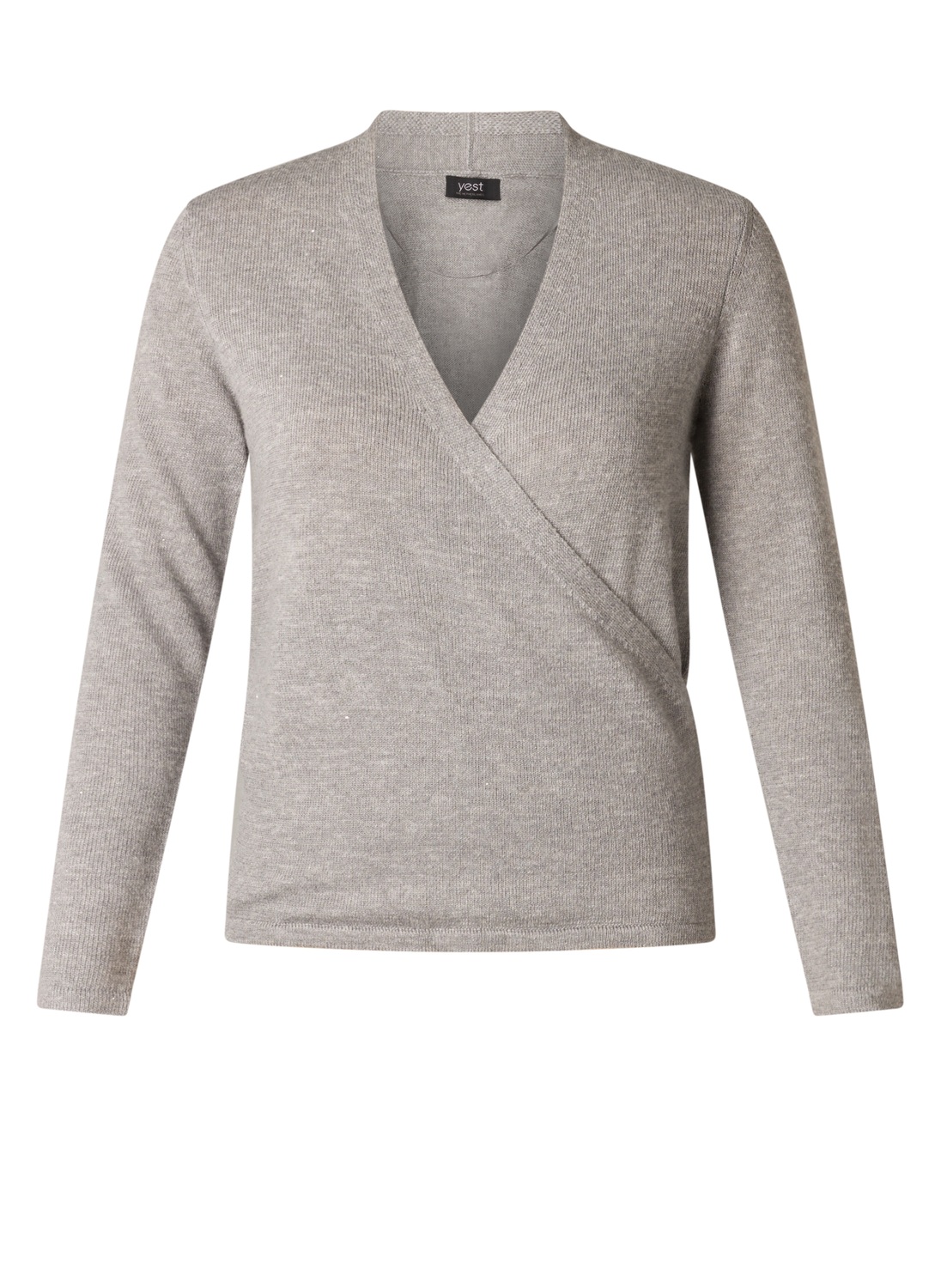 Gemaakt van een comfortabele mix met 10% wol, is deze zachte zilvergrijze trui van Yesta een wanna-have voor de winter. De gebreide structuur en vaste overslag zorgen voor een elegante look, terwijl de subtiele zilverkleurige glitters een sprankeling toevoegen. De Trinetta is 70 cm lang.