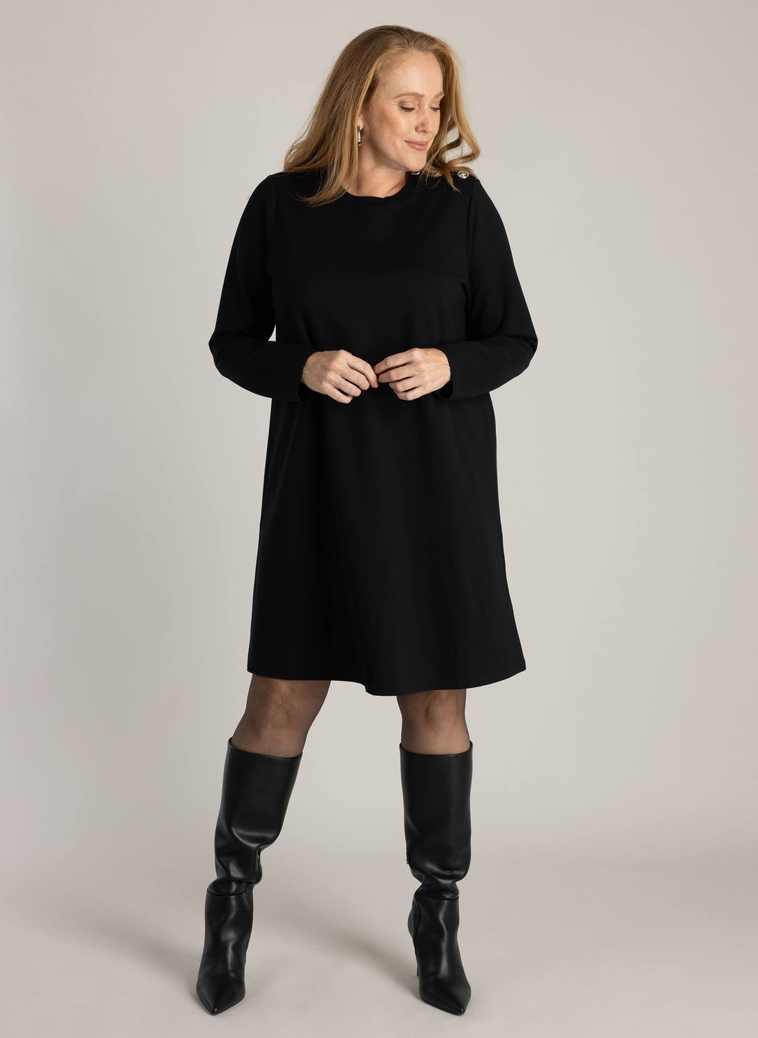 Art.nr: A005896 BESCHIKBARE MATEN X-0(44) 0(46) 1(48) 2(50) 3(52) 4(54/56) Yest Curve jurk Hedwiga €109,95