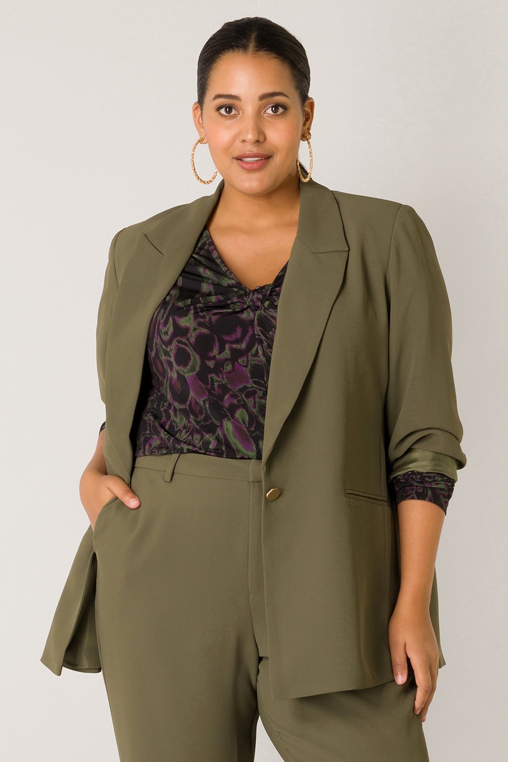 Yesta Vera-Linn Essential blazer, vervaardigd uit een gladde stof met een lichte voering.