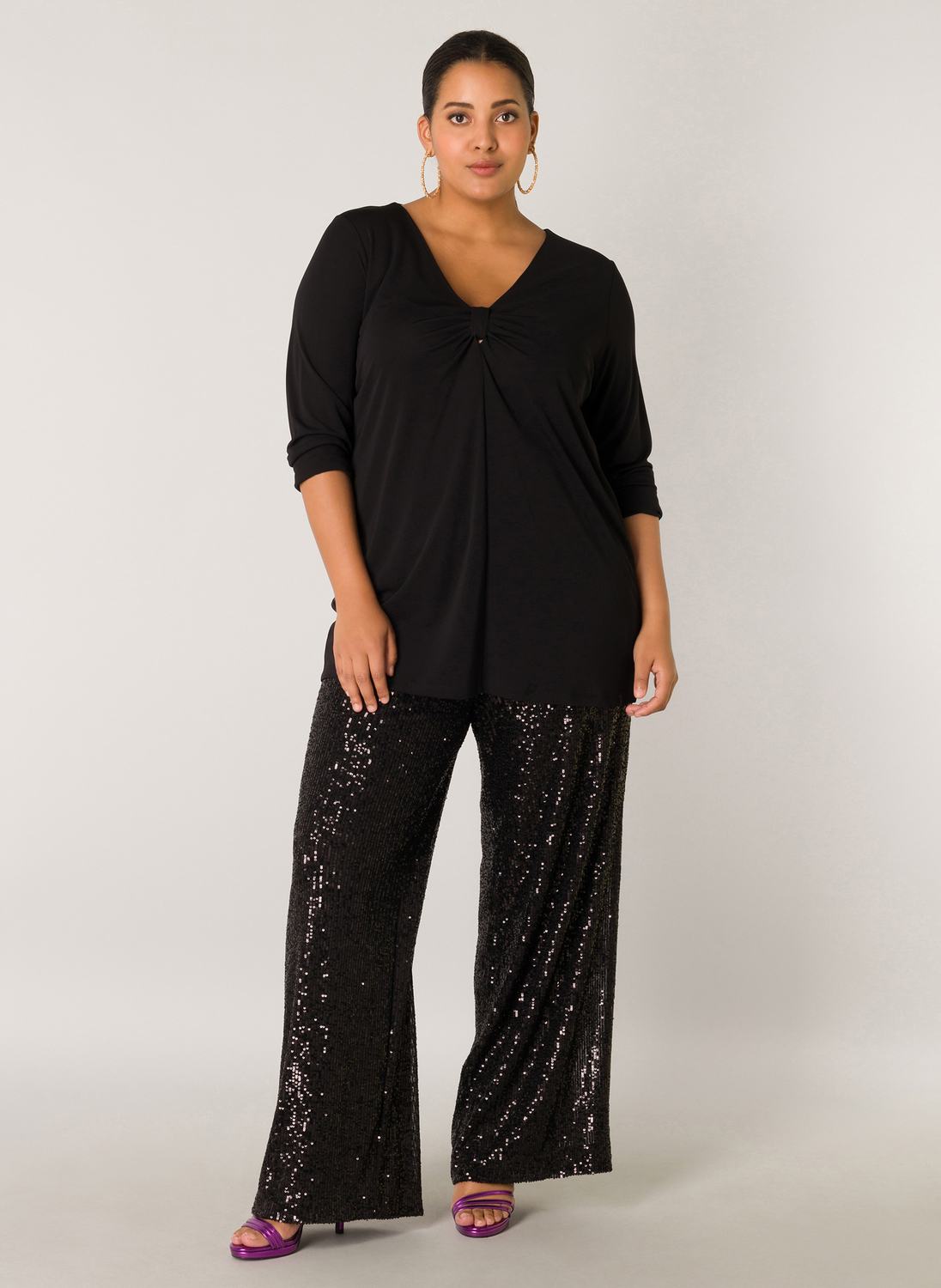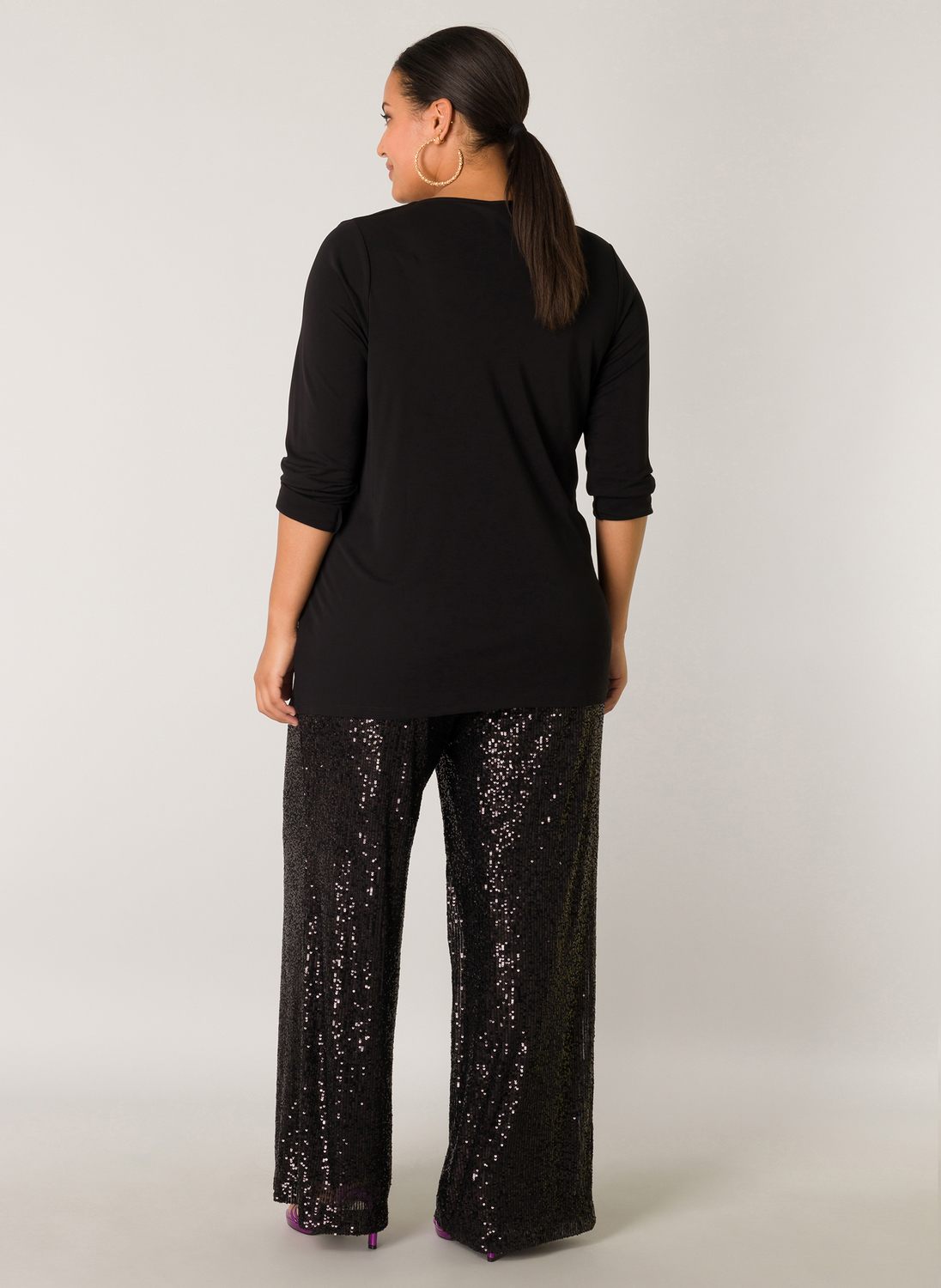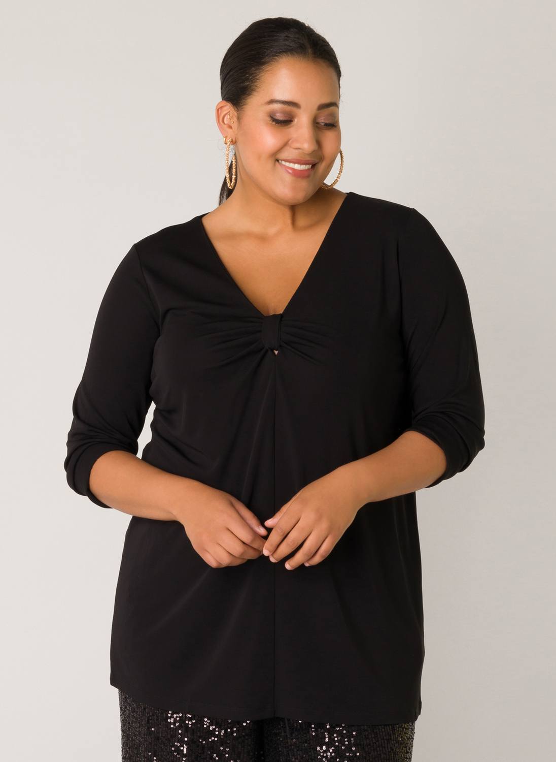 Dit prachtige zachtglanzende shirt van Yesta is vervaardigd uit soepele viscose jersey. Het shirt heeft een lage V-hals met een sierlijk knoopdetail op de borst en is verkrijgbaar in de kleur zwart.