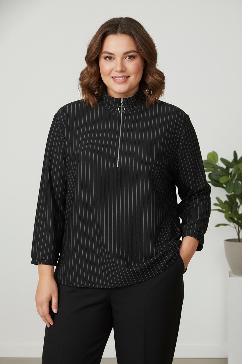 ZHENZI streep sweater trui ritsZHENZI streep sweater trui rits